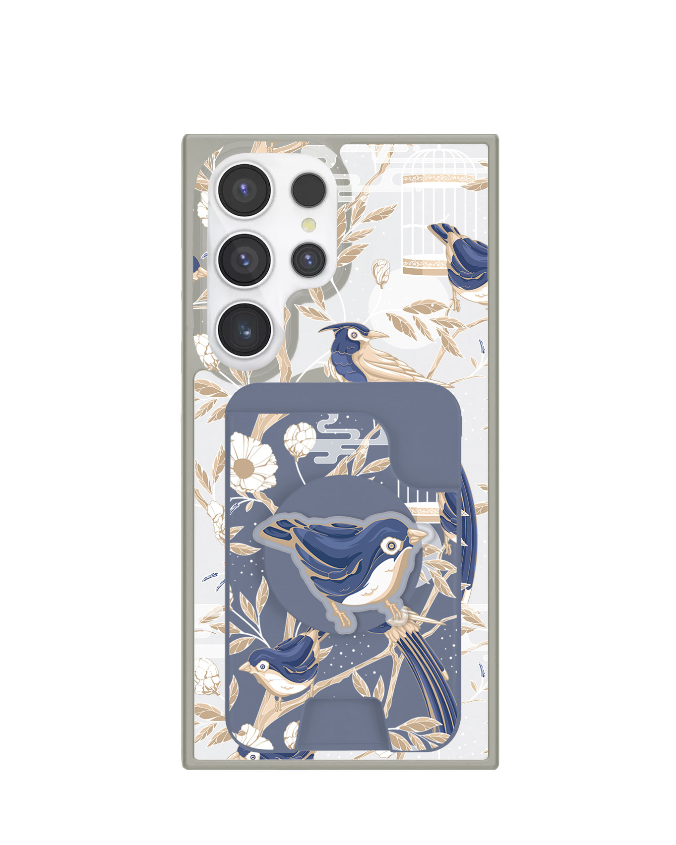 Material TPU dengan magnet di bagian belakang, ditambah dengan built-in Pop Grip di bagian depan.
