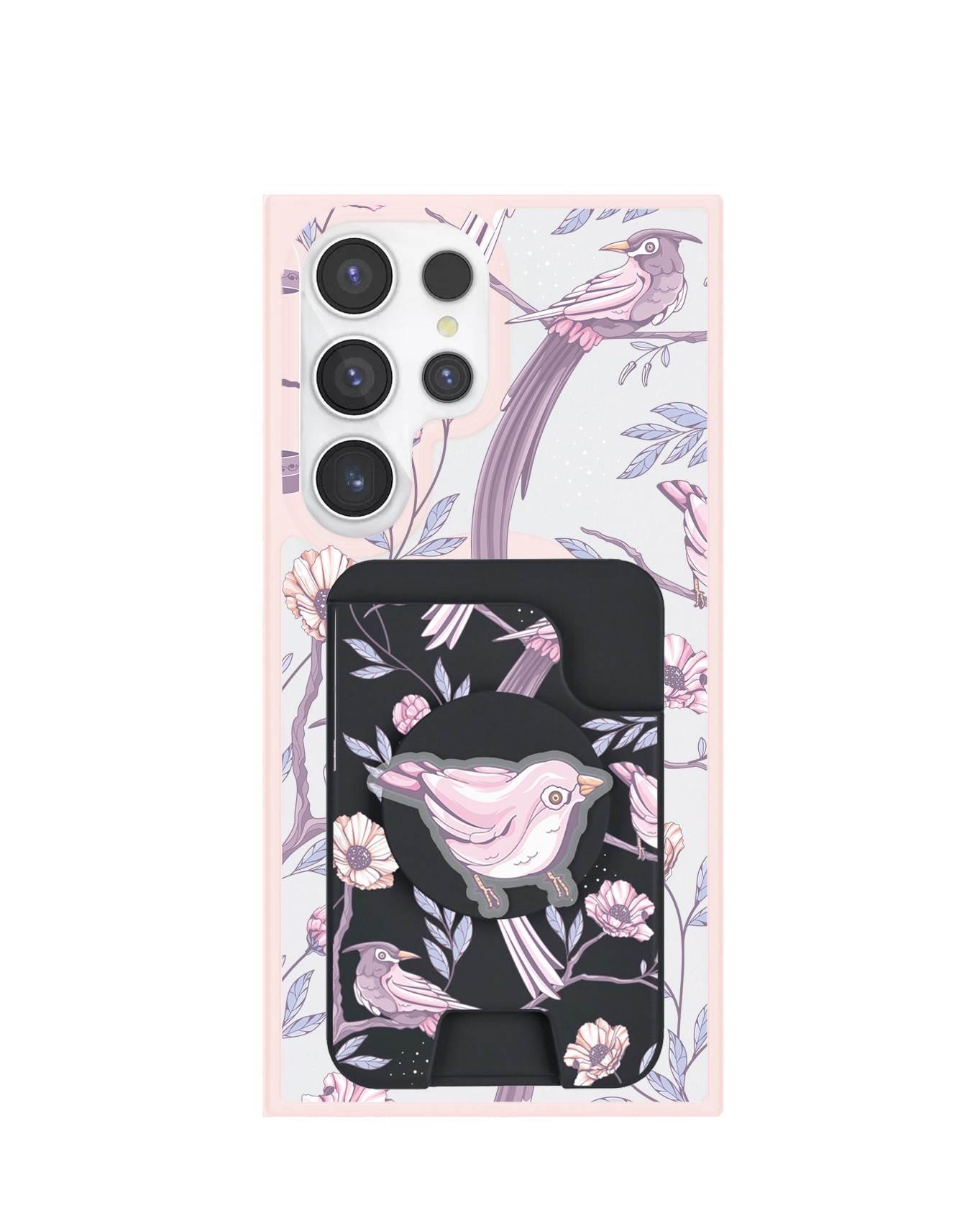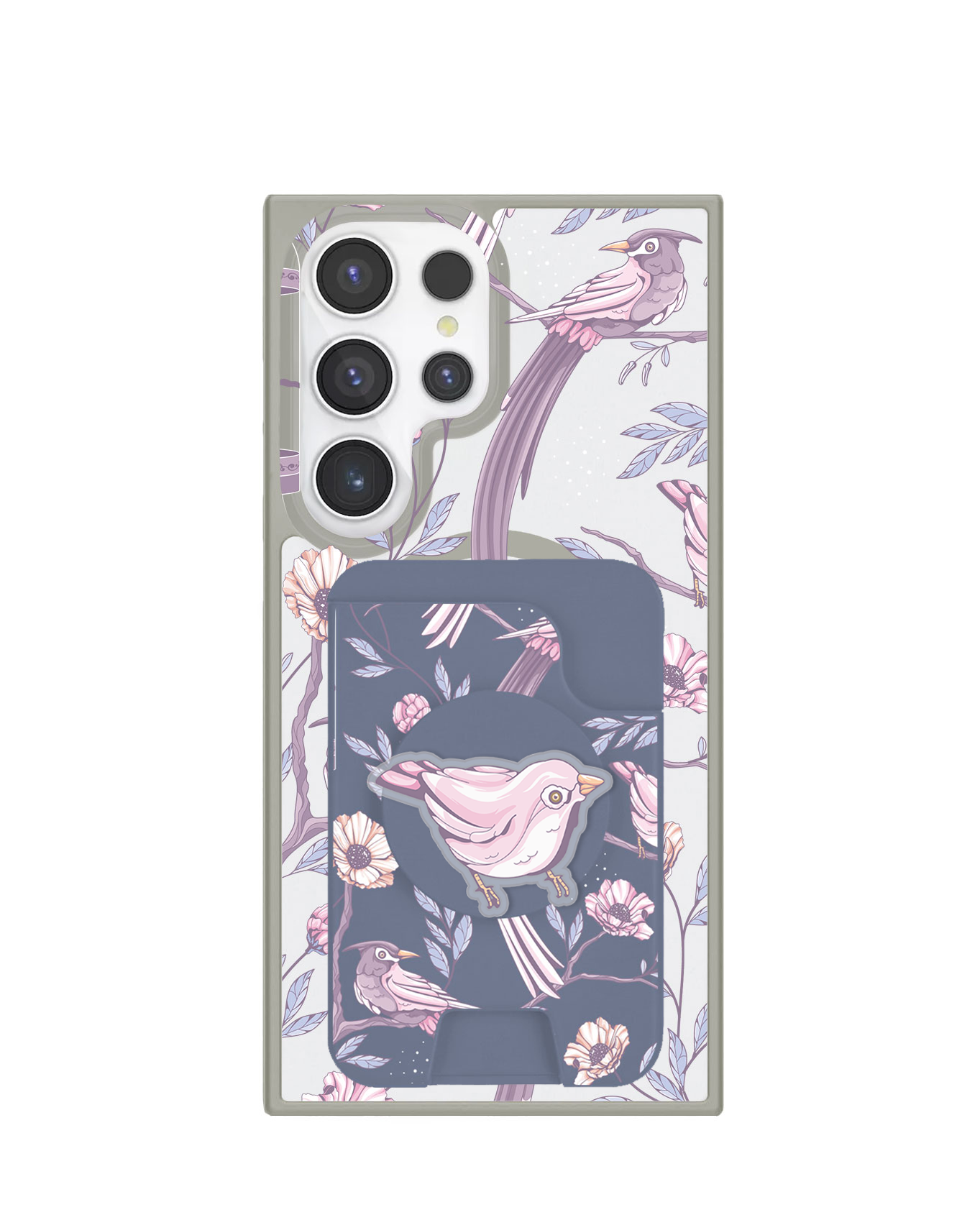 Material TPU dengan magnet di bagian belakang, ditambah dengan built-in Pop Grip di bagian depan.