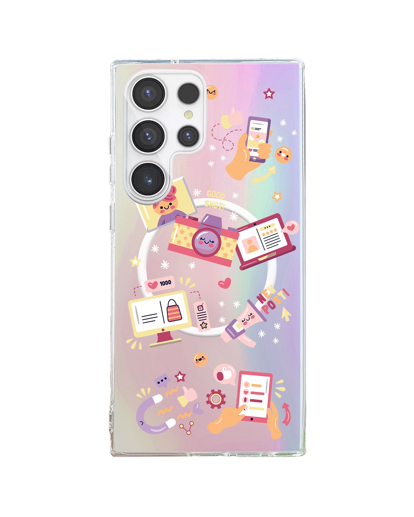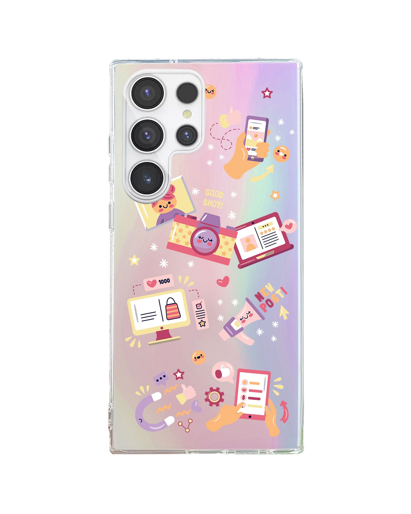 Rearguard Holo Case dari Caseuphoria ini unik banget, warna nya bisa berubah saat dikenakan cahaya dan saat di gerakkan ke sudut pandang yang berbeda. Bahkan bisa keluar beberapa warna!