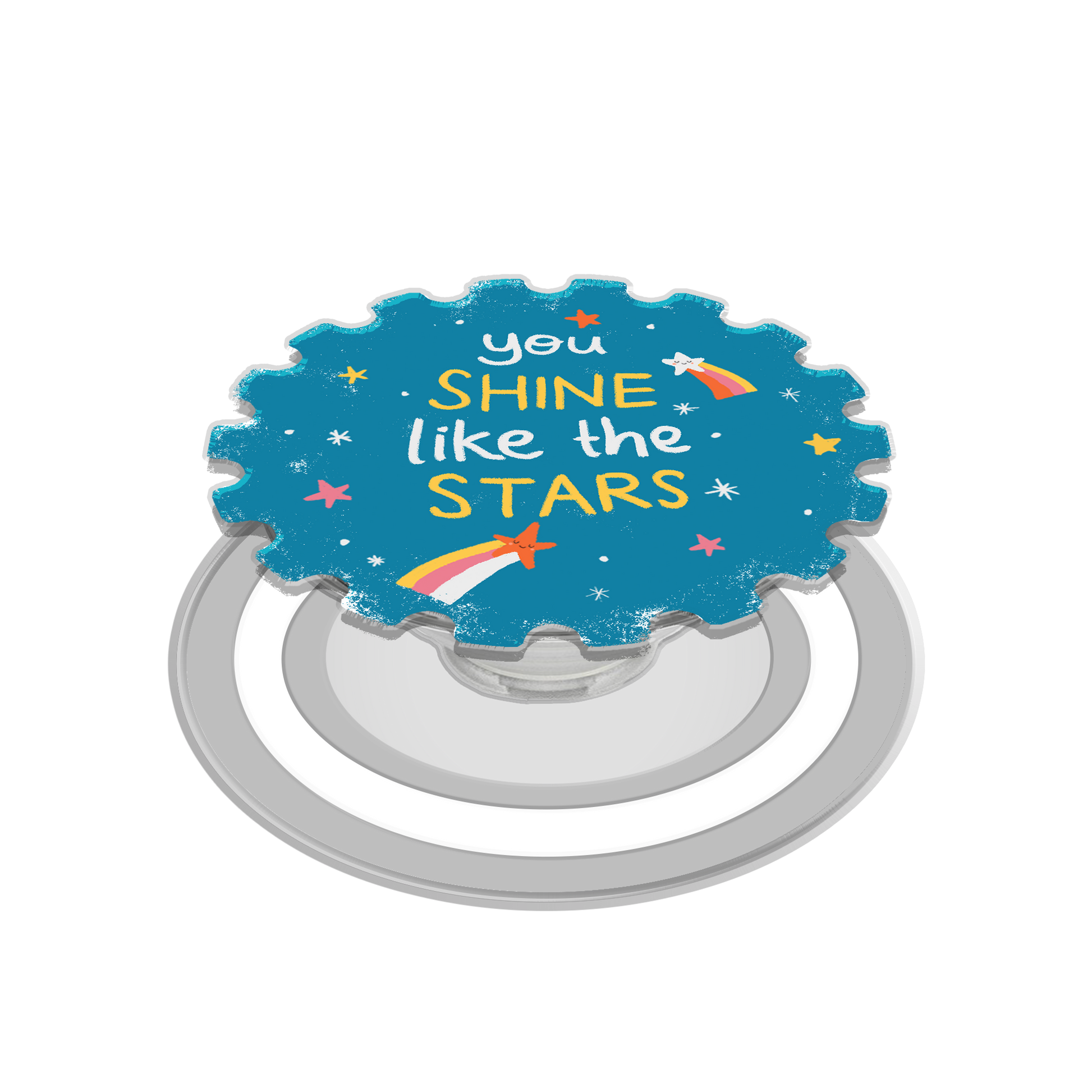 Acrylic with UV-printed for the design with acrylic magnetic based pop up grip, completed with 3M industrial grade to stick it on the back of your phone case.