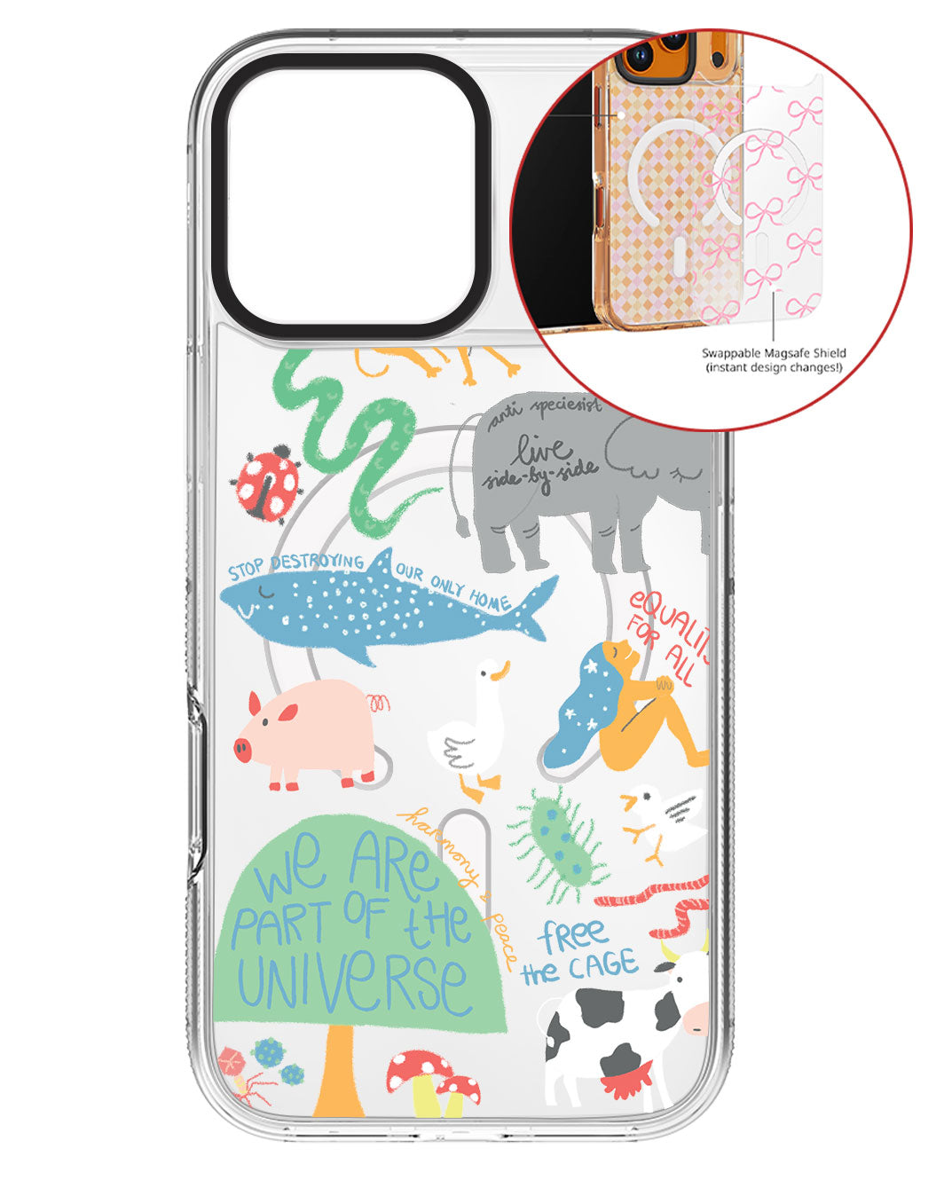 Terbuat dari Akrilik transparan di lengkapi dengan Magsafe / Magnetic yang di print dengan desain pilihan dengan teknologi UV Printing. Magsafe digunakan untuk merekatkan dengan base case / case HP dasar dan untuk support aksesoris berbasis Magsafe.