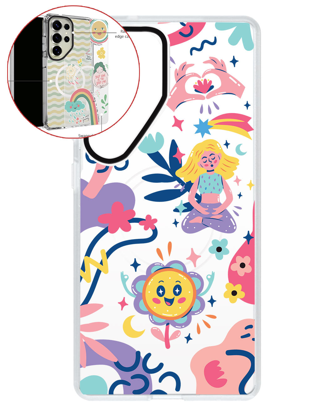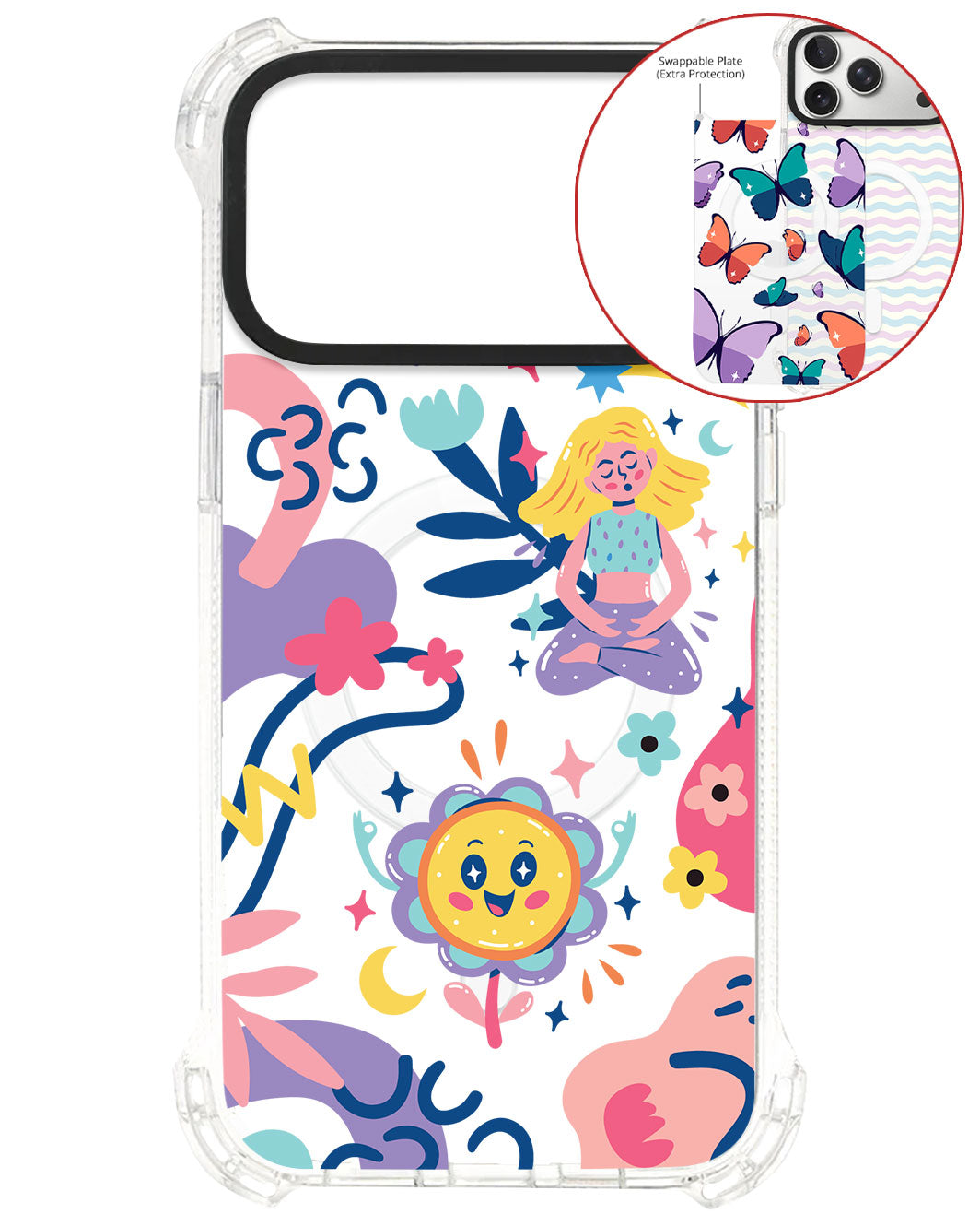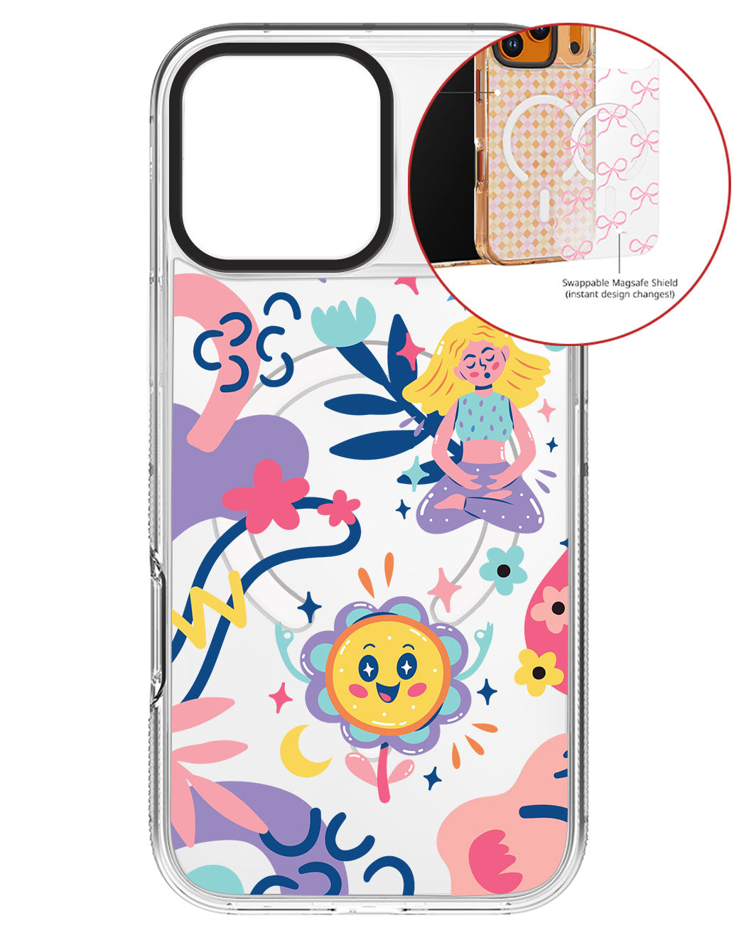 Terbuat dari Akrilik transparan di lengkapi dengan Magsafe / Magnetic yang di print dengan desain pilihan dengan teknologi UV Printing. Magsafe digunakan untuk merekatkan dengan base case / case HP dasar dan untuk support aksesoris berbasis Magsafe.