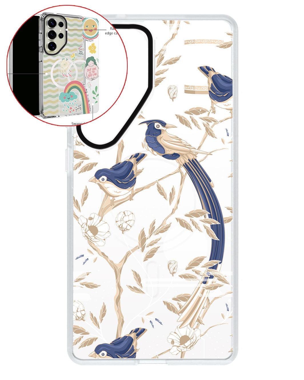 Terbuat dari Akrilik transparan di lengkapi dengan Magsafe / Magnetic yang di print dengan desain pilihan dengan teknologi UV Printing. Magsafe digunakan untuk merekatkan dengan base case / case HP dasar dan untuk support aksesoris berbasis Magsafe.