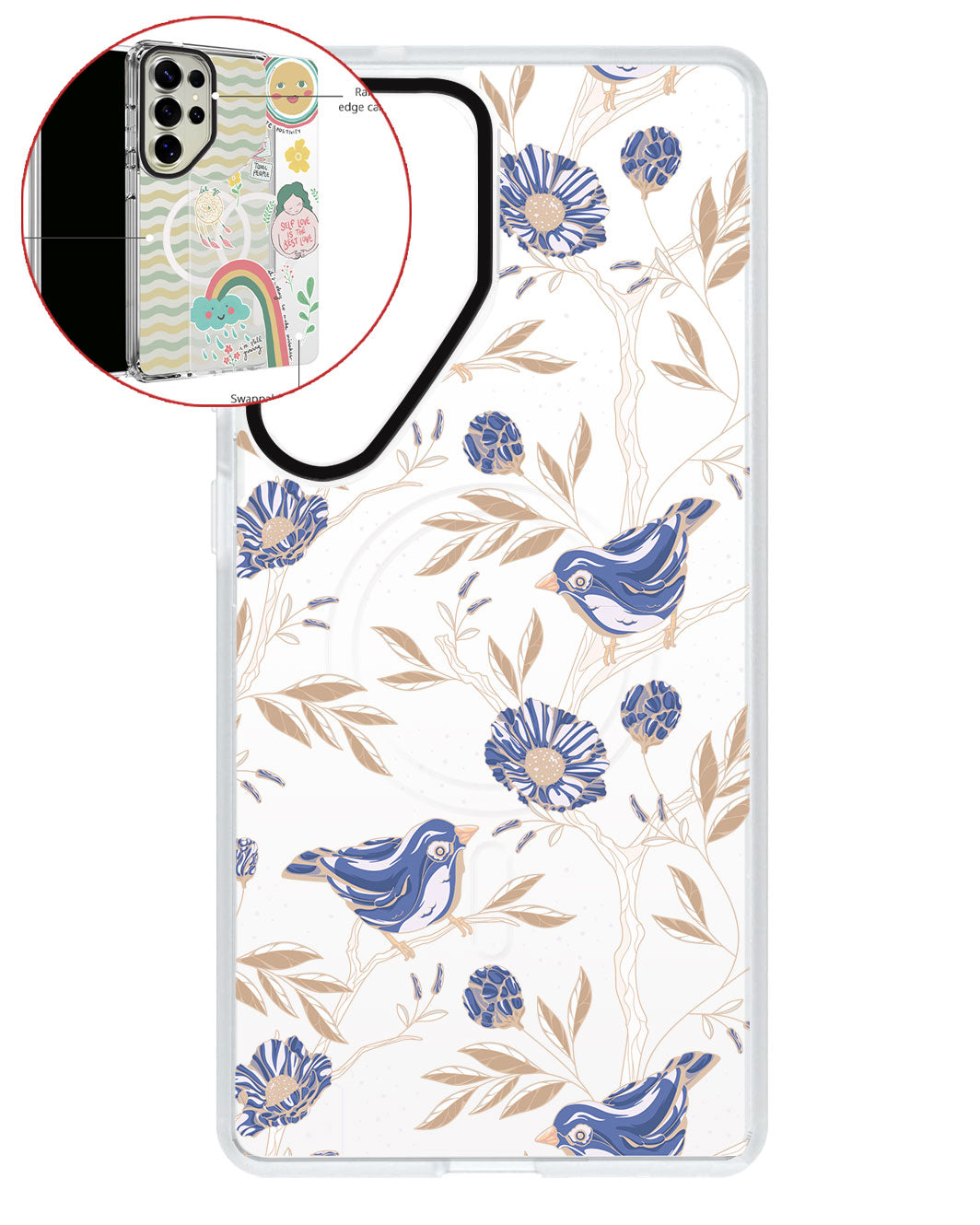 Terbuat dari Akrilik transparan di lengkapi dengan Magsafe / Magnetic yang di print dengan desain pilihan dengan teknologi UV Printing. Magsafe digunakan untuk merekatkan dengan base case / case HP dasar dan untuk support aksesoris berbasis Magsafe.