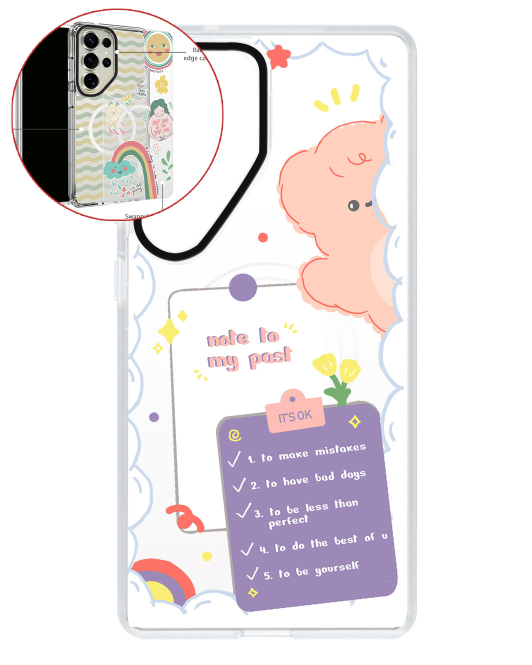Terbuat dari Akrilik transparan di lengkapi dengan Magsafe / Magnetic yang di print dengan desain pilihan dengan teknologi UV Printing. Magsafe digunakan untuk merekatkan dengan base case / case HP dasar dan untuk support aksesoris berbasis Magsafe.