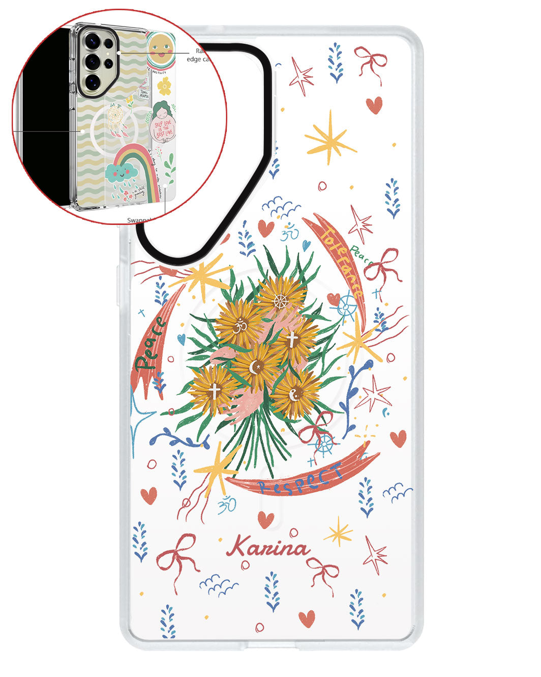 Terbuat dari Akrilik transparan di lengkapi dengan Magsafe / Magnetic yang di print dengan desain pilihan dengan teknologi UV Printing. Magsafe digunakan untuk merekatkan dengan base case / case HP dasar dan untuk support aksesoris berbasis Magsafe.