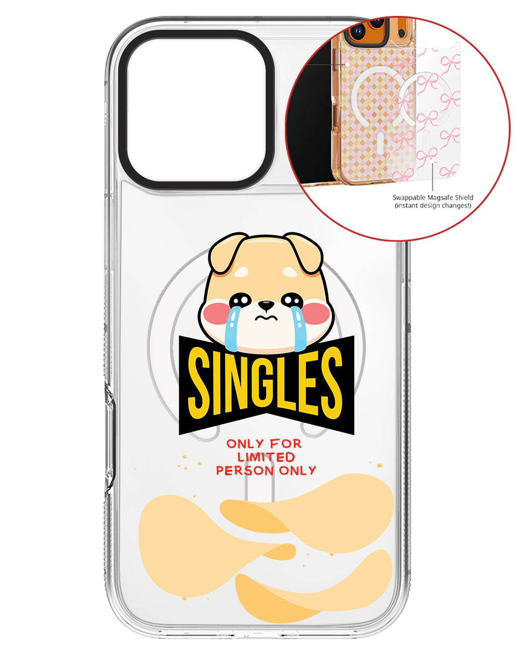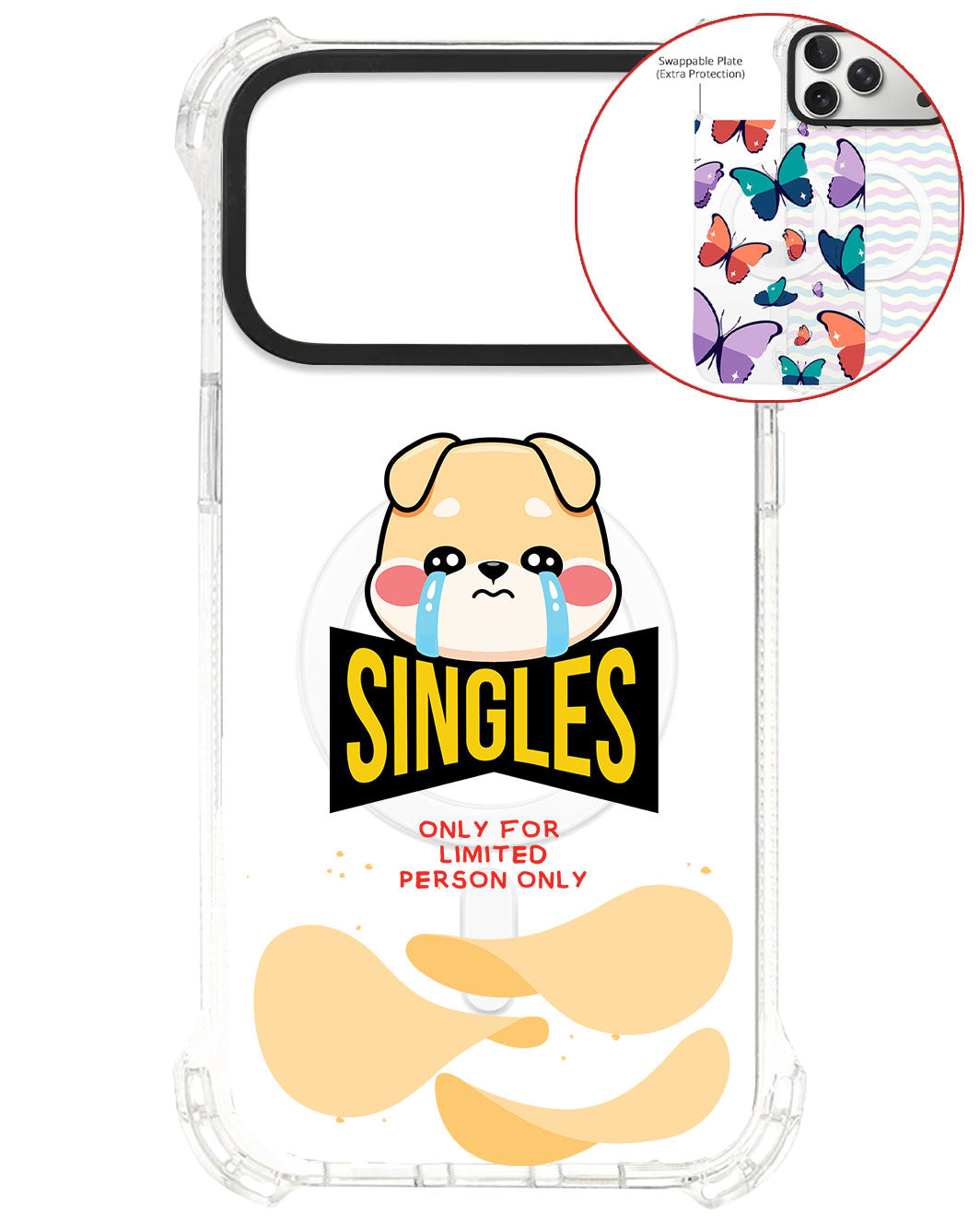 Terbuat dari Akrilik transparan di lengkapi dengan Magsafe / Magnetic yang di print dengan desain pilihan dengan teknologi UV Printing. Magsafe digunakan untuk merekatkan dengan base case / case HP dasar dan untuk support aksesoris berbasis Magsafe.